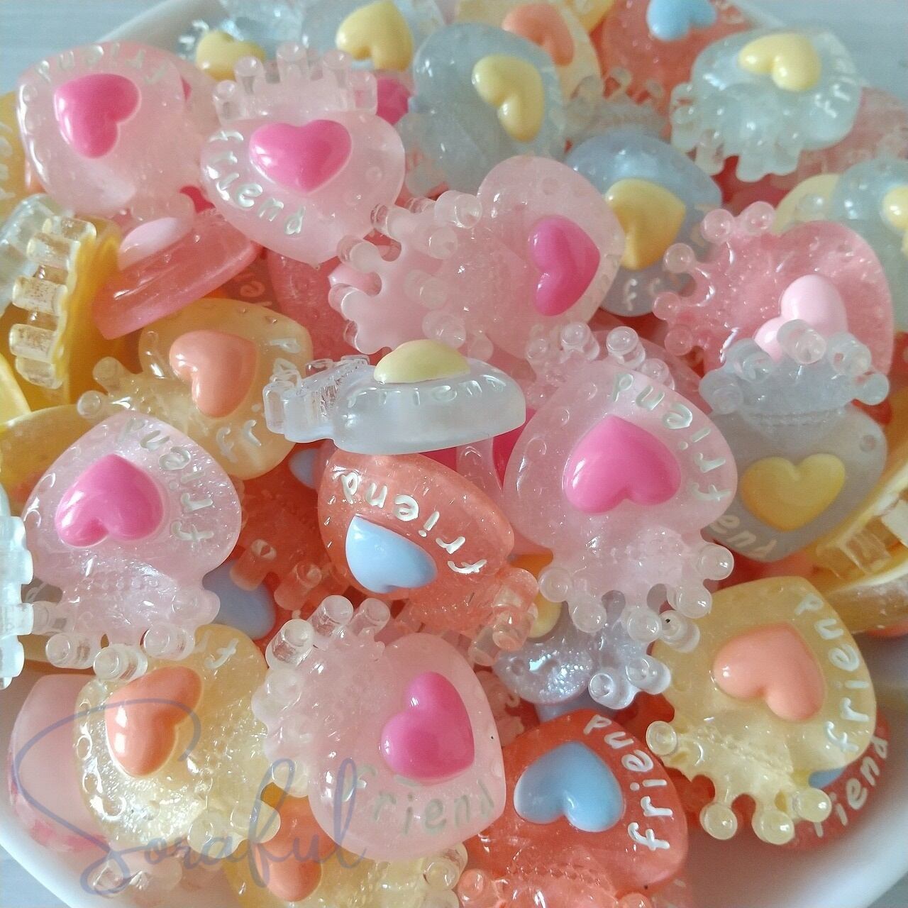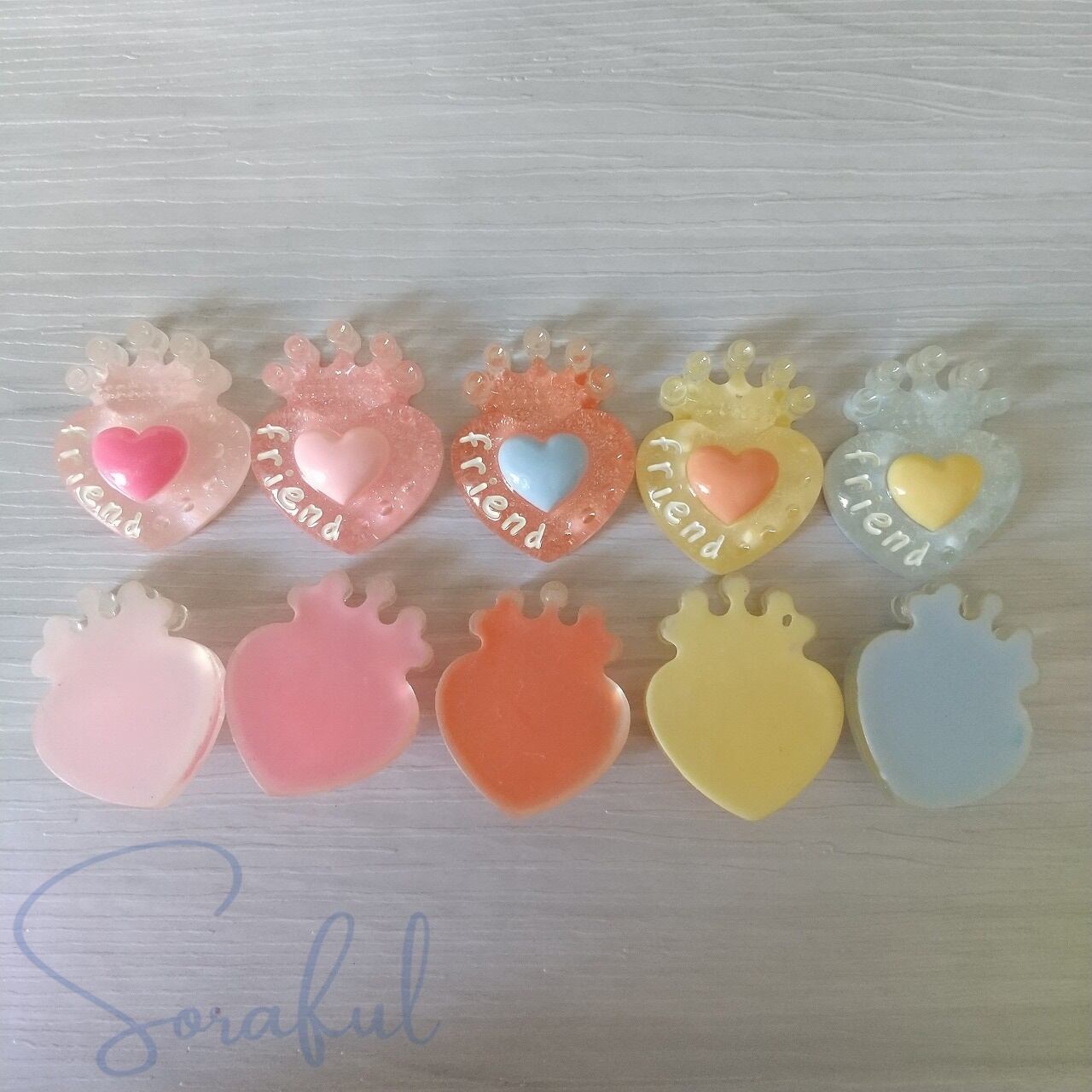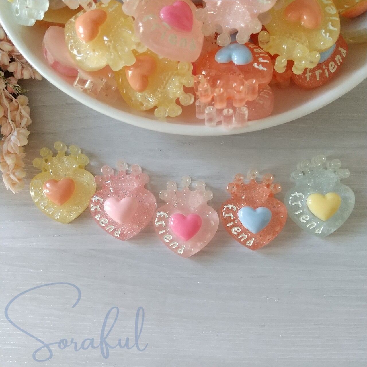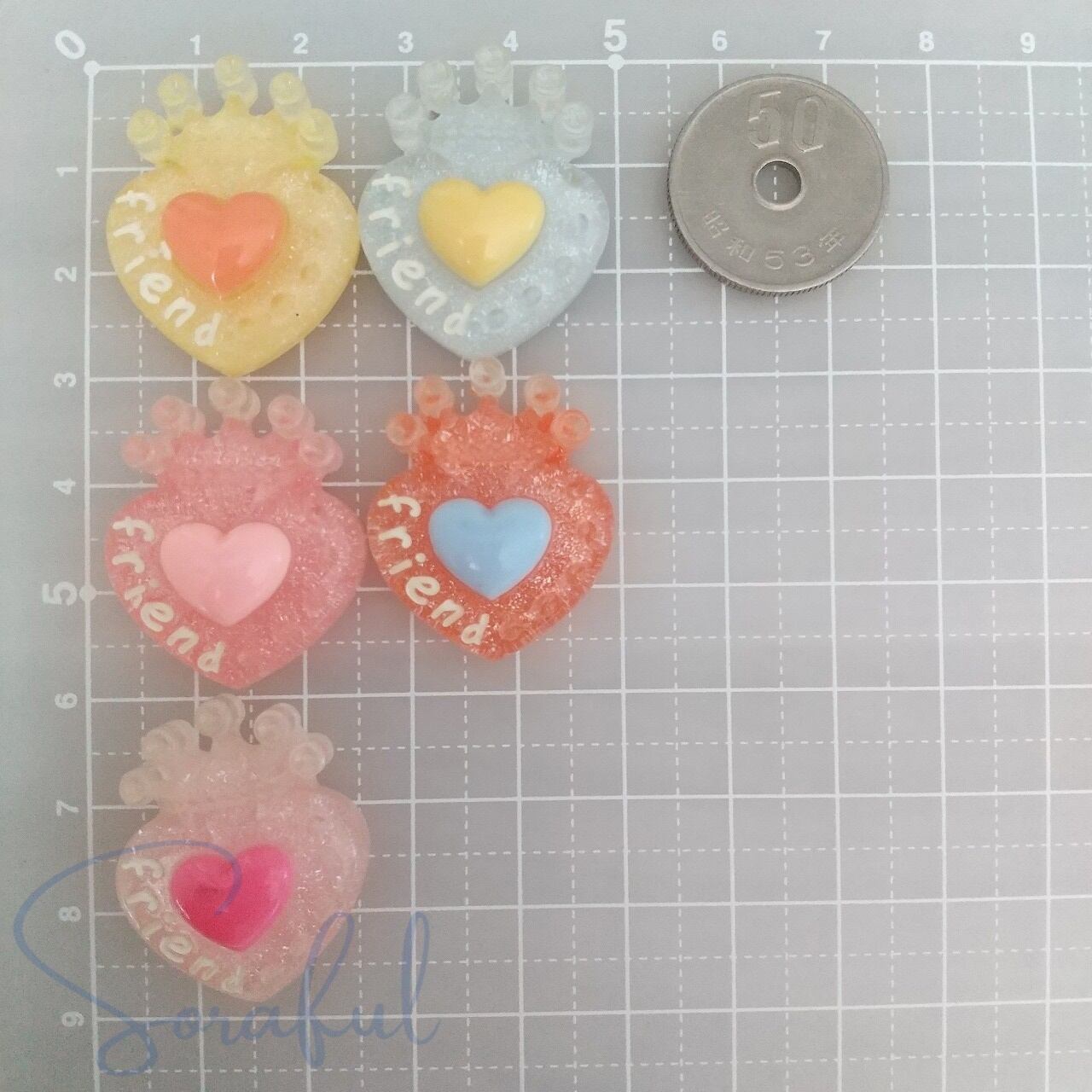 デコパーツ ハートなクラウン 王冠 Friend クリアカラー ラメ 5色セット 5個 D-0636