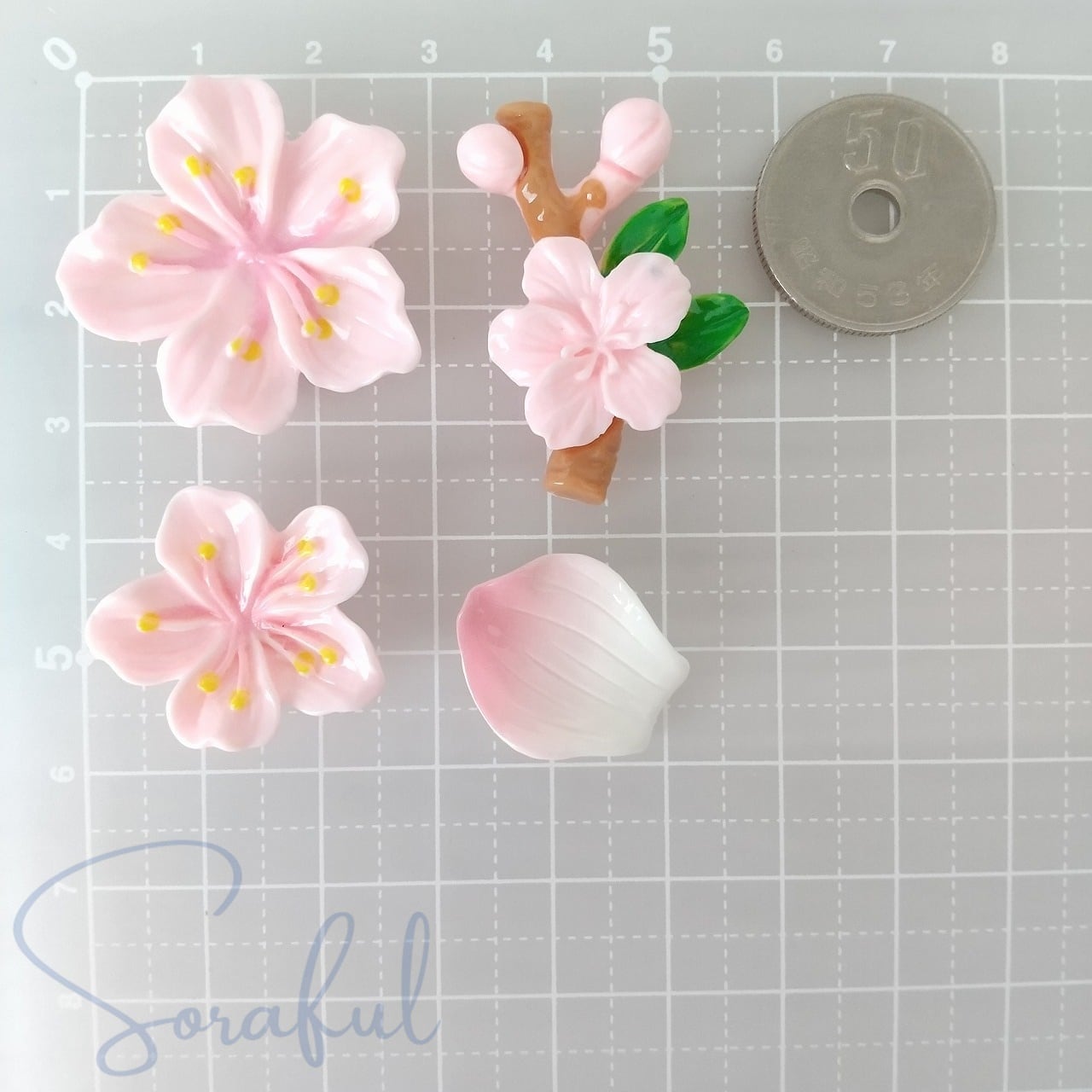 デコパーツ 桜シリーズ 枝つき 4個 D-0629-branch
