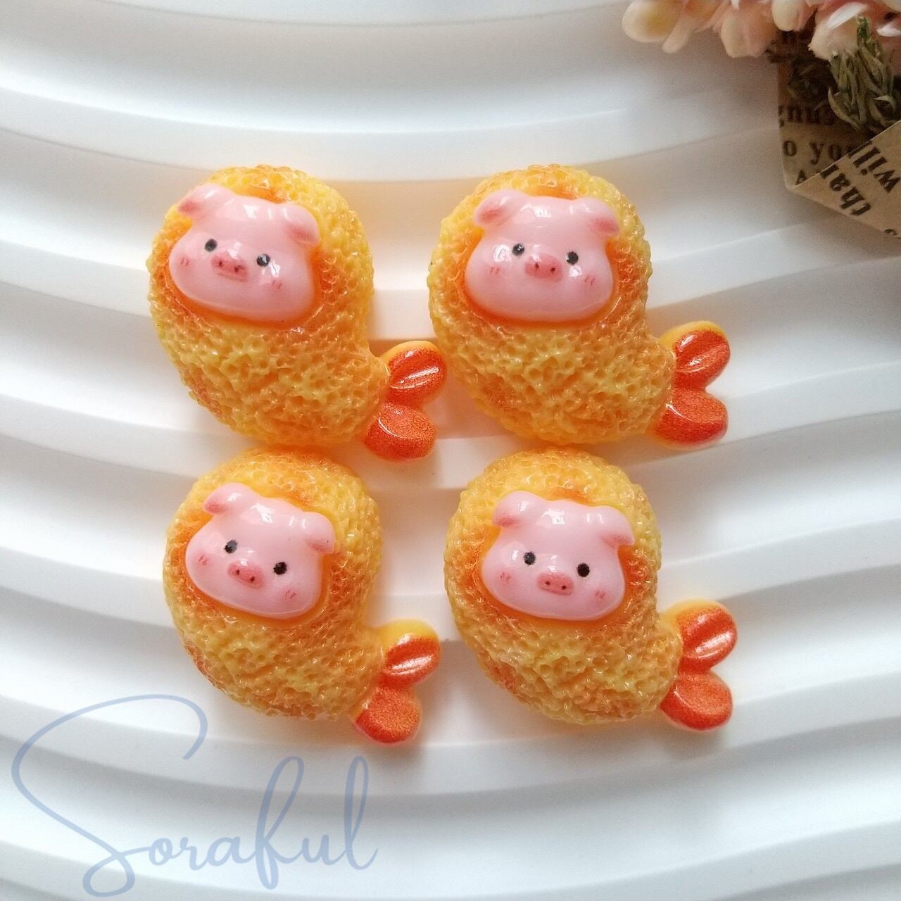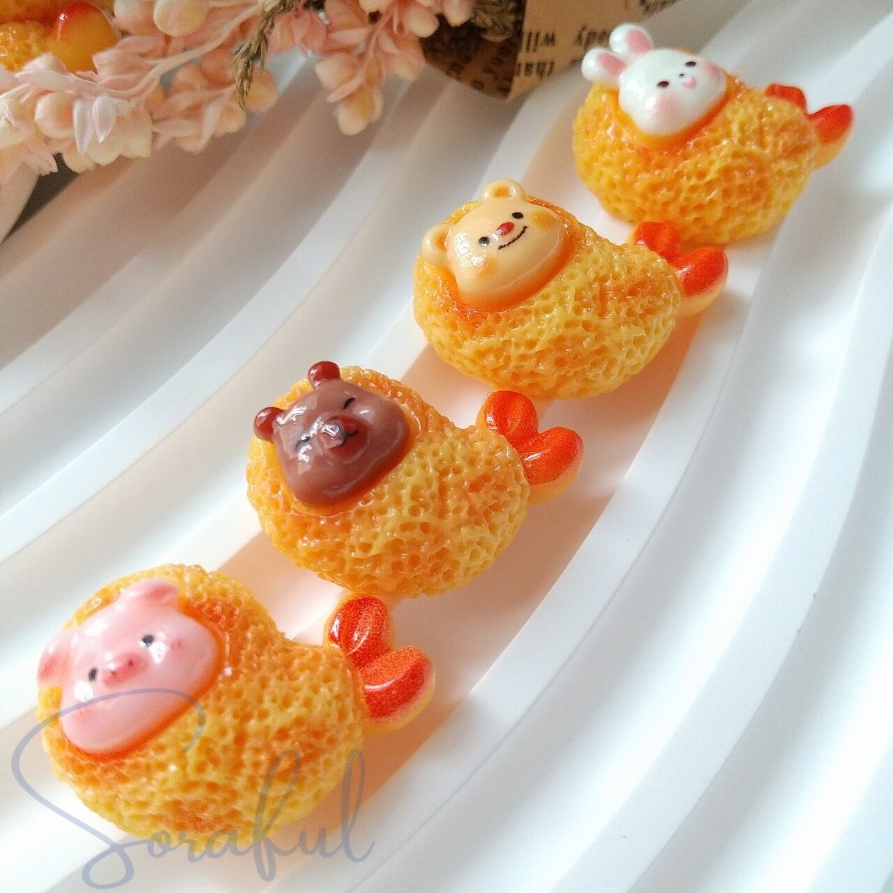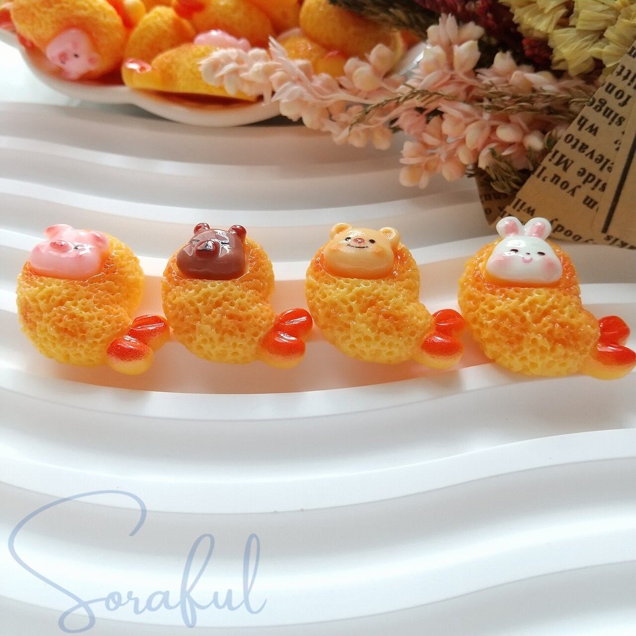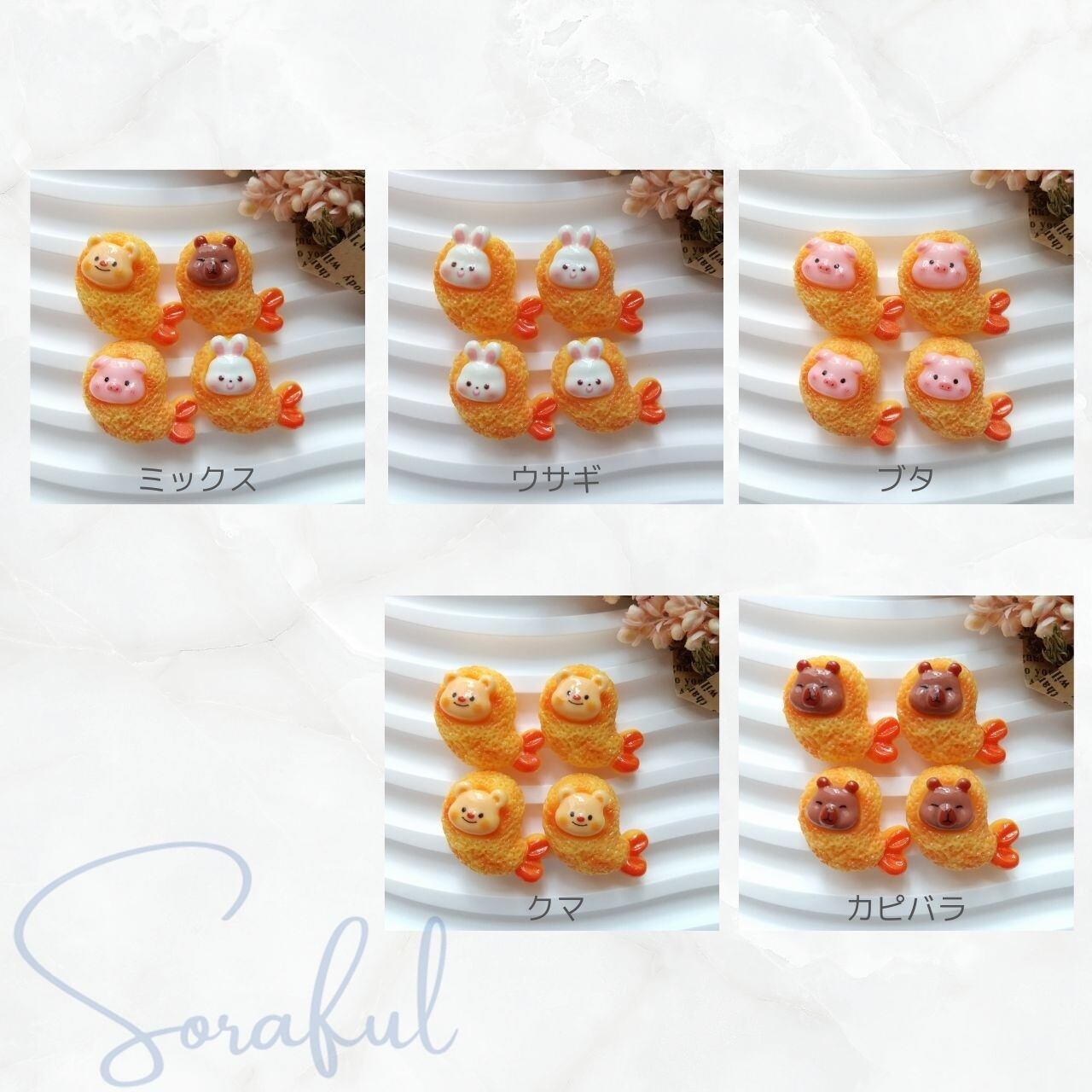 【4個】えびフライみたいなアニマルたち カピバラ うさぎ くま ぶた 動物【デコパーツ】D-0642