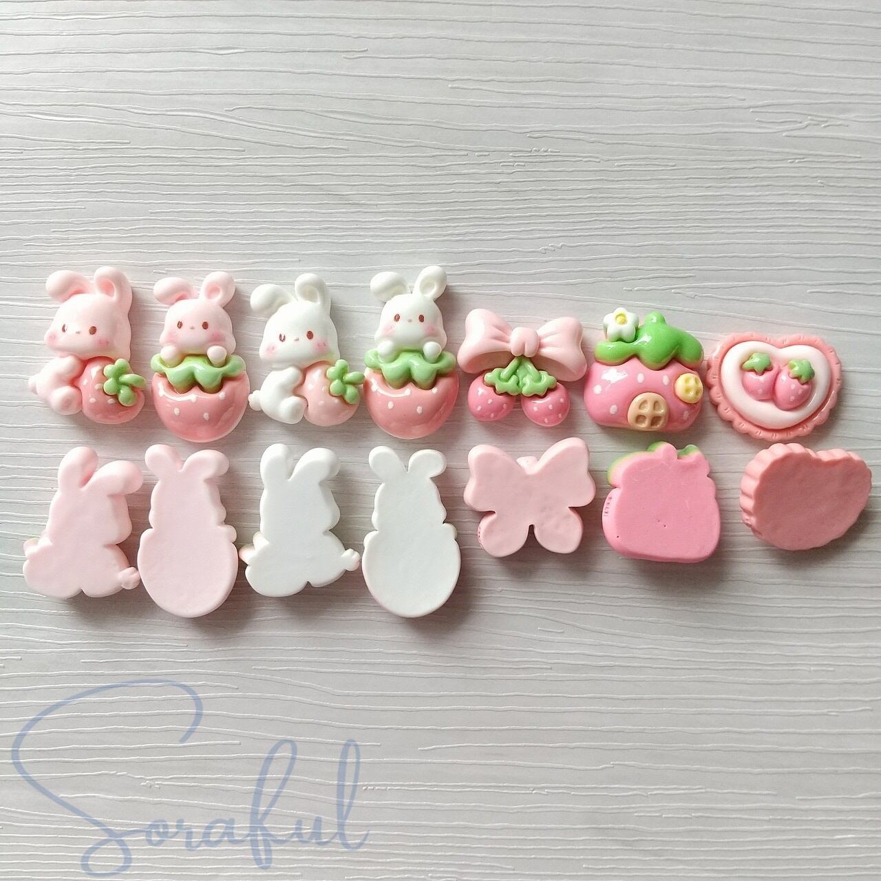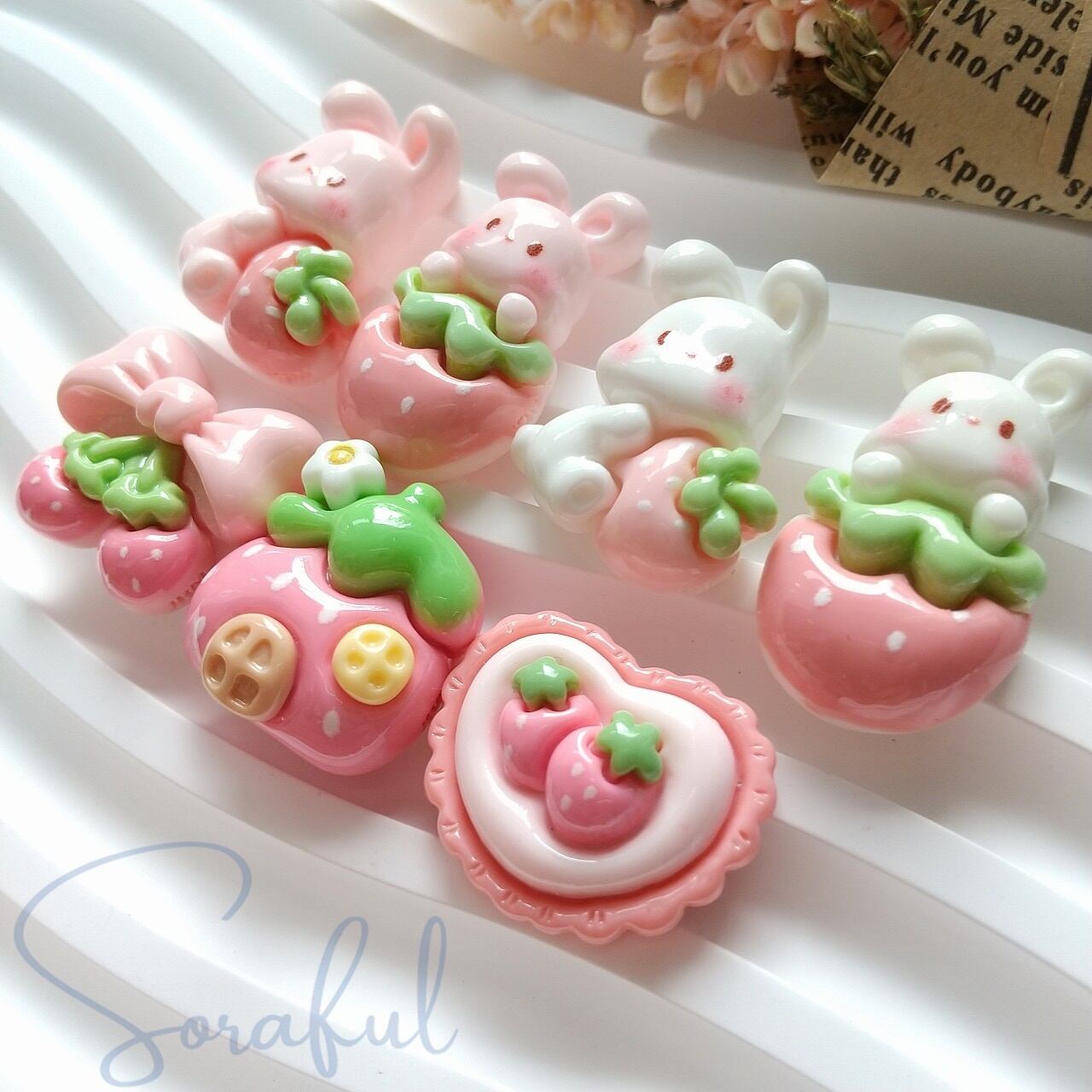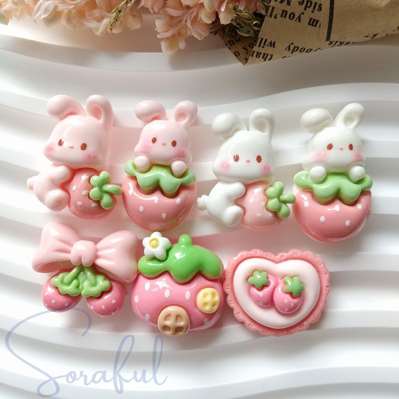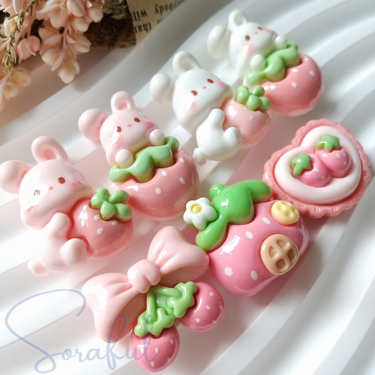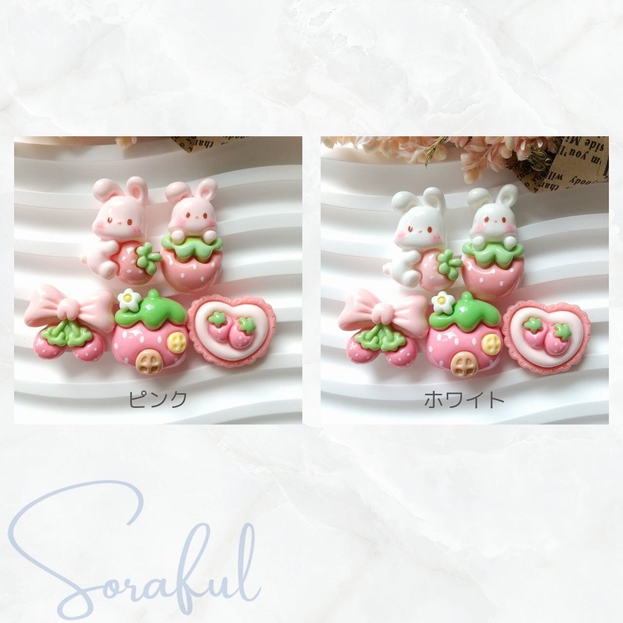 【5種セット】うさちゃんといちごのお家 イチゴ 苺 ストロベリー ハウス【デコパーツ】D-0647