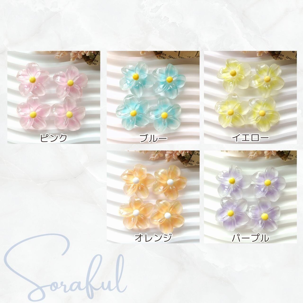 【4個】水菓子みたいな涼しげなお花たち クリア フラワー【デコパーツ】D-0651-4