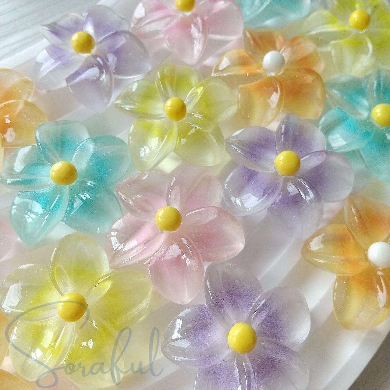 【5色セット】水菓子みたいな涼しげなお花たち クリア フラワー【デコパーツ】D-0651