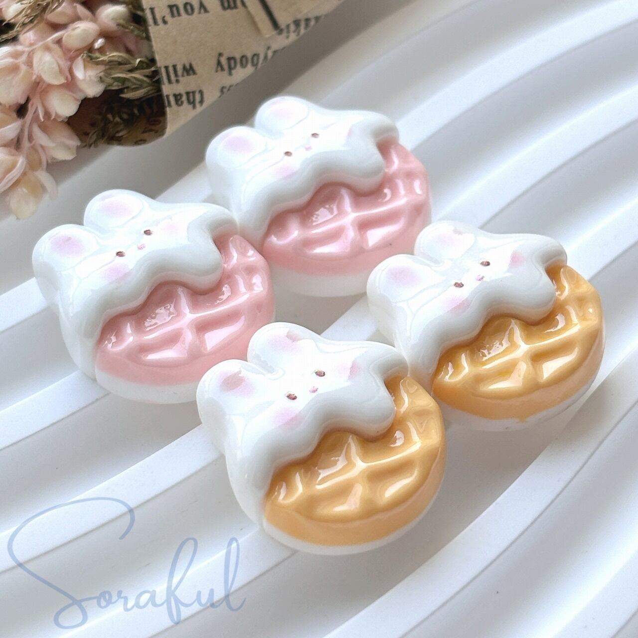 【4個】うさぎのクリームワッフル【デコパーツ】D-0646-bisc
