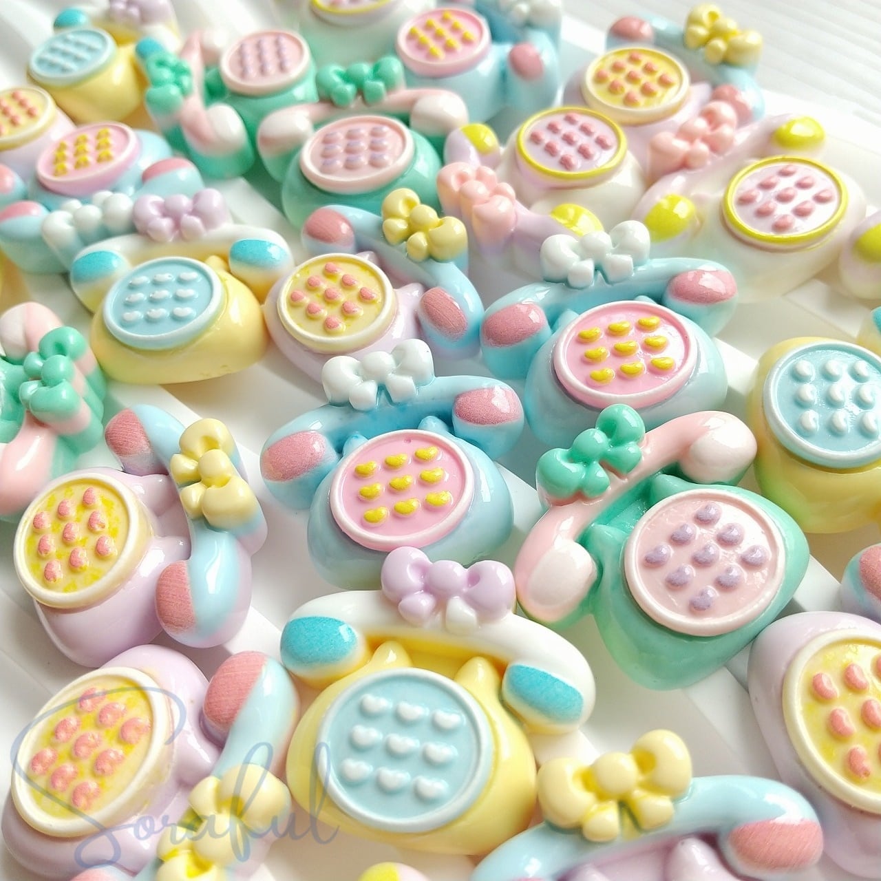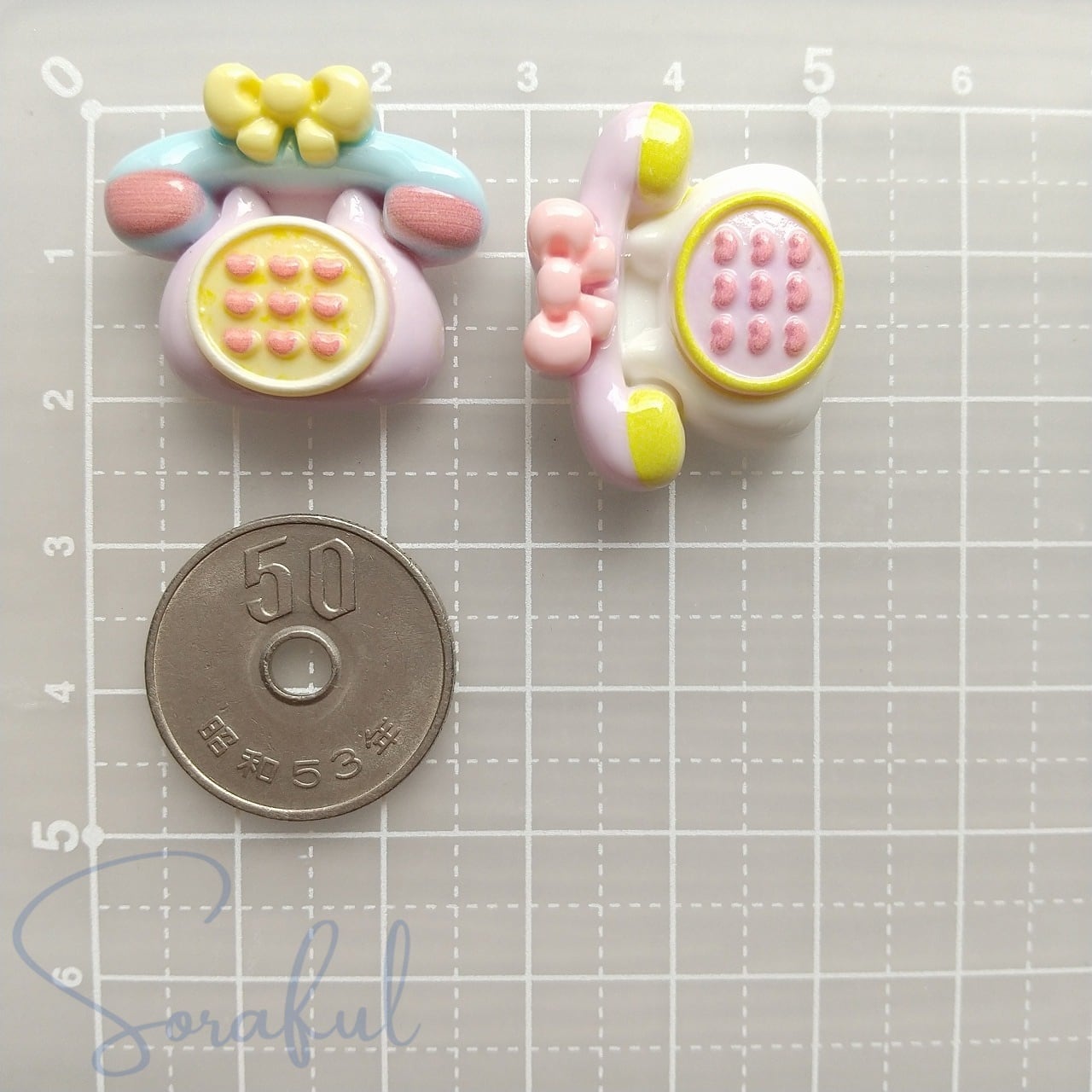【5色セット】リボンのプッシュホン パステルカラー レトロ 押しボタン式電話機【デコパーツ】D-0643