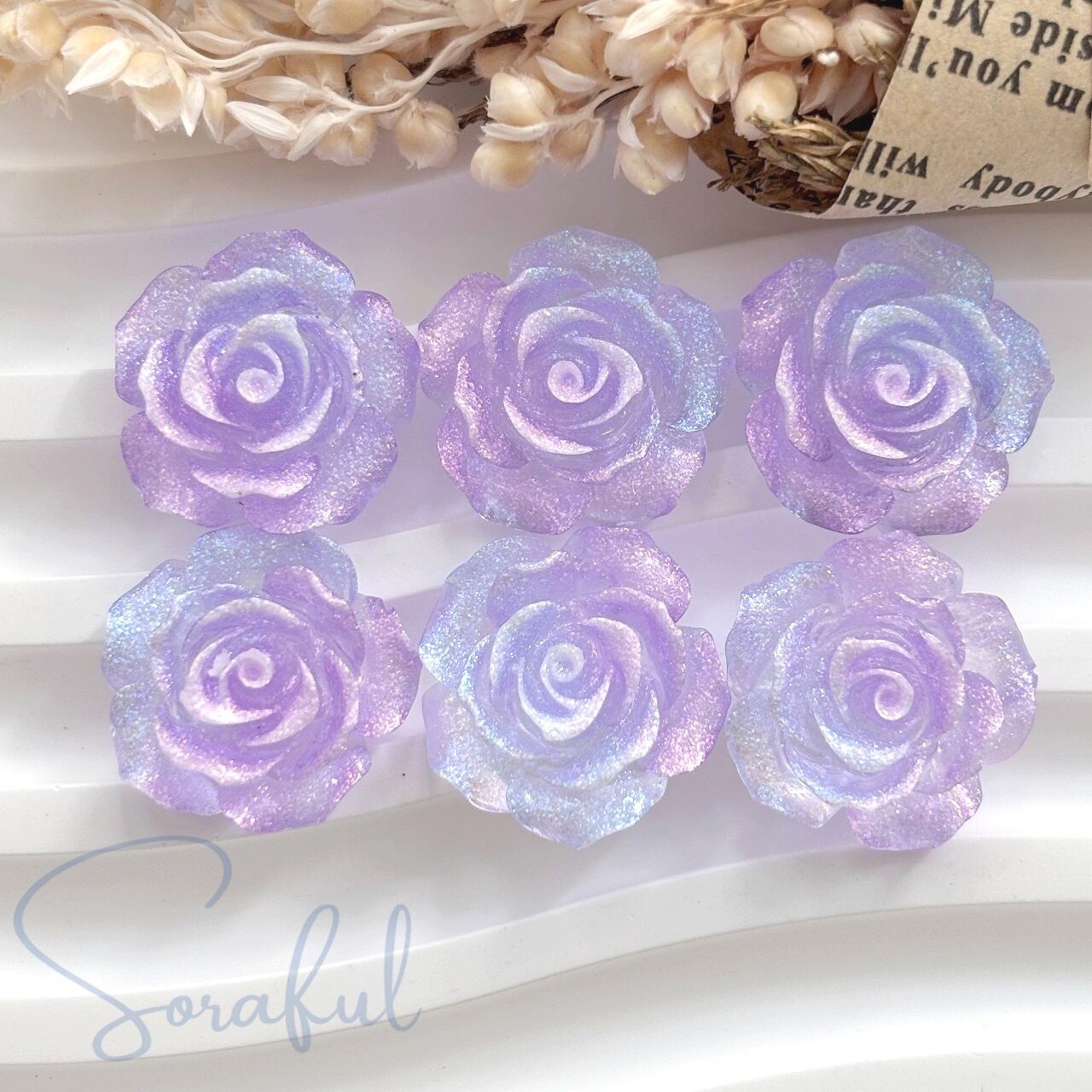 【6個】エレガントなシマー薔薇カボション バラ ローズ ラメ 18mm【デコパーツ】D-0669