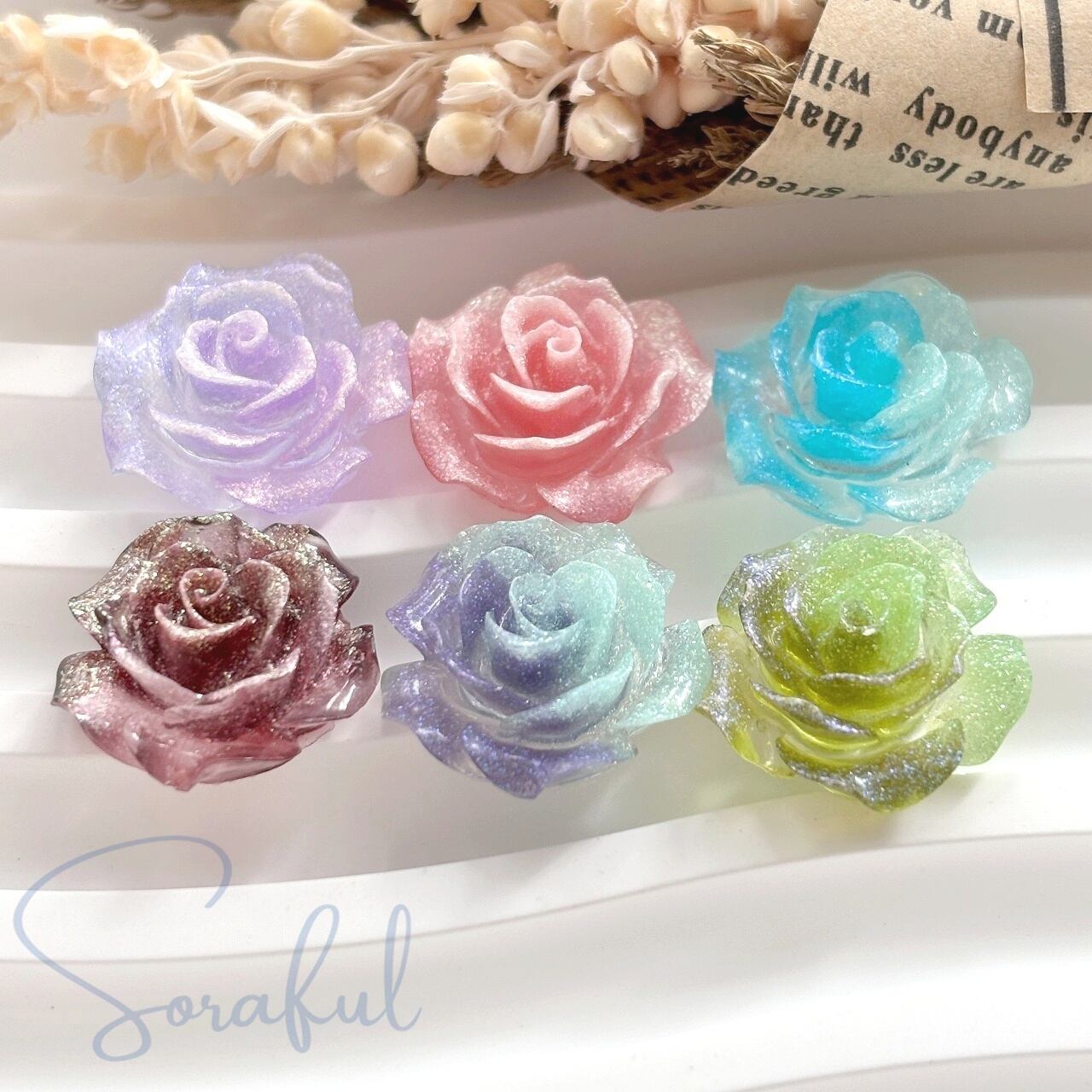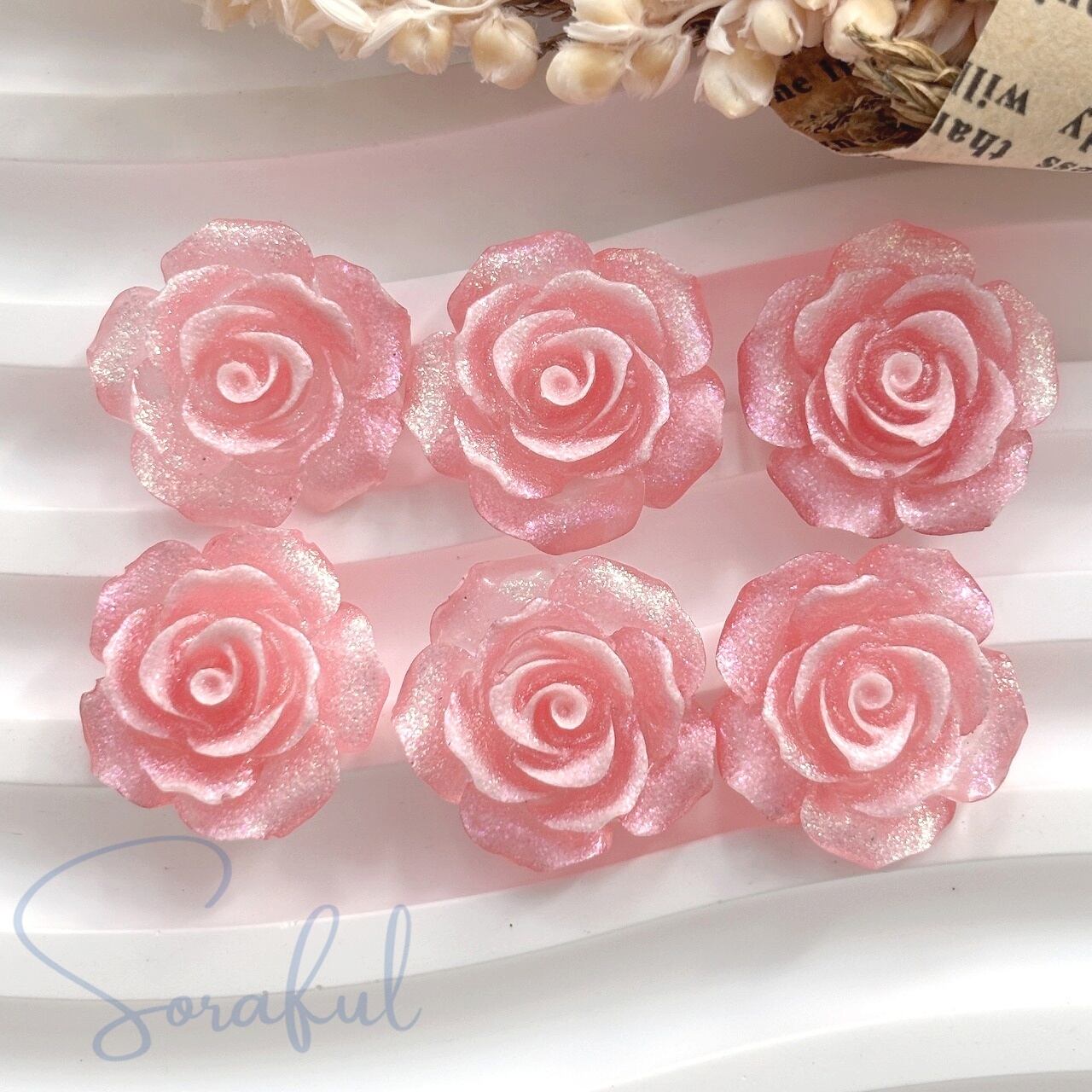 上品なラメが綺麗な薔薇のデコパーツ 18mm 6個セット