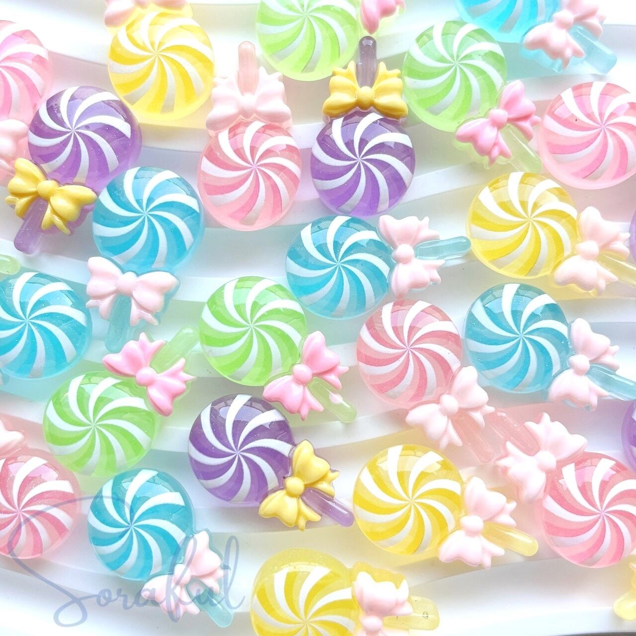【5色セット】リボンの付いたロリポップ キャンディー【デコパーツ】D-0688