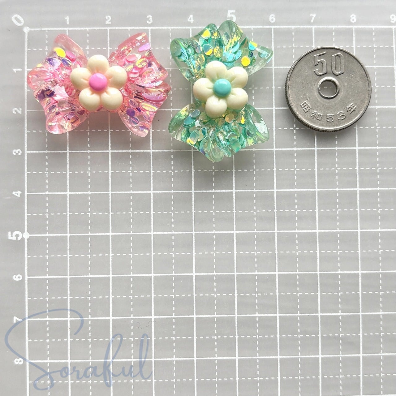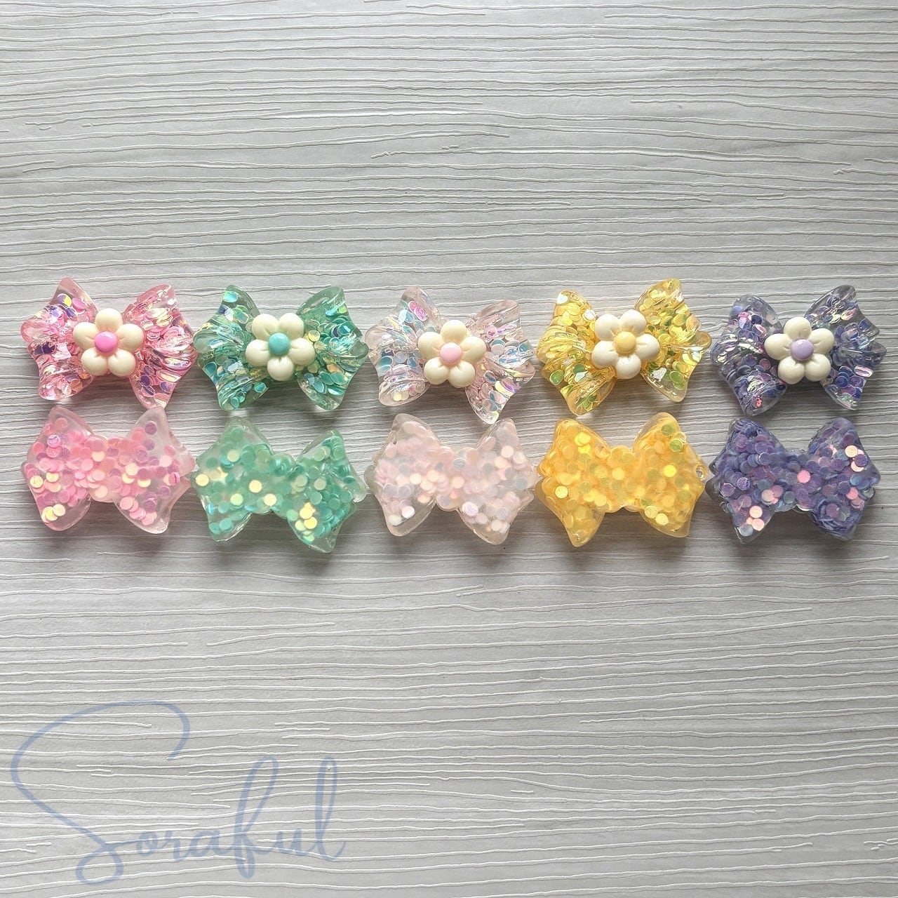 クリアなお花のリボン キラキラ スパンコール 5色セット