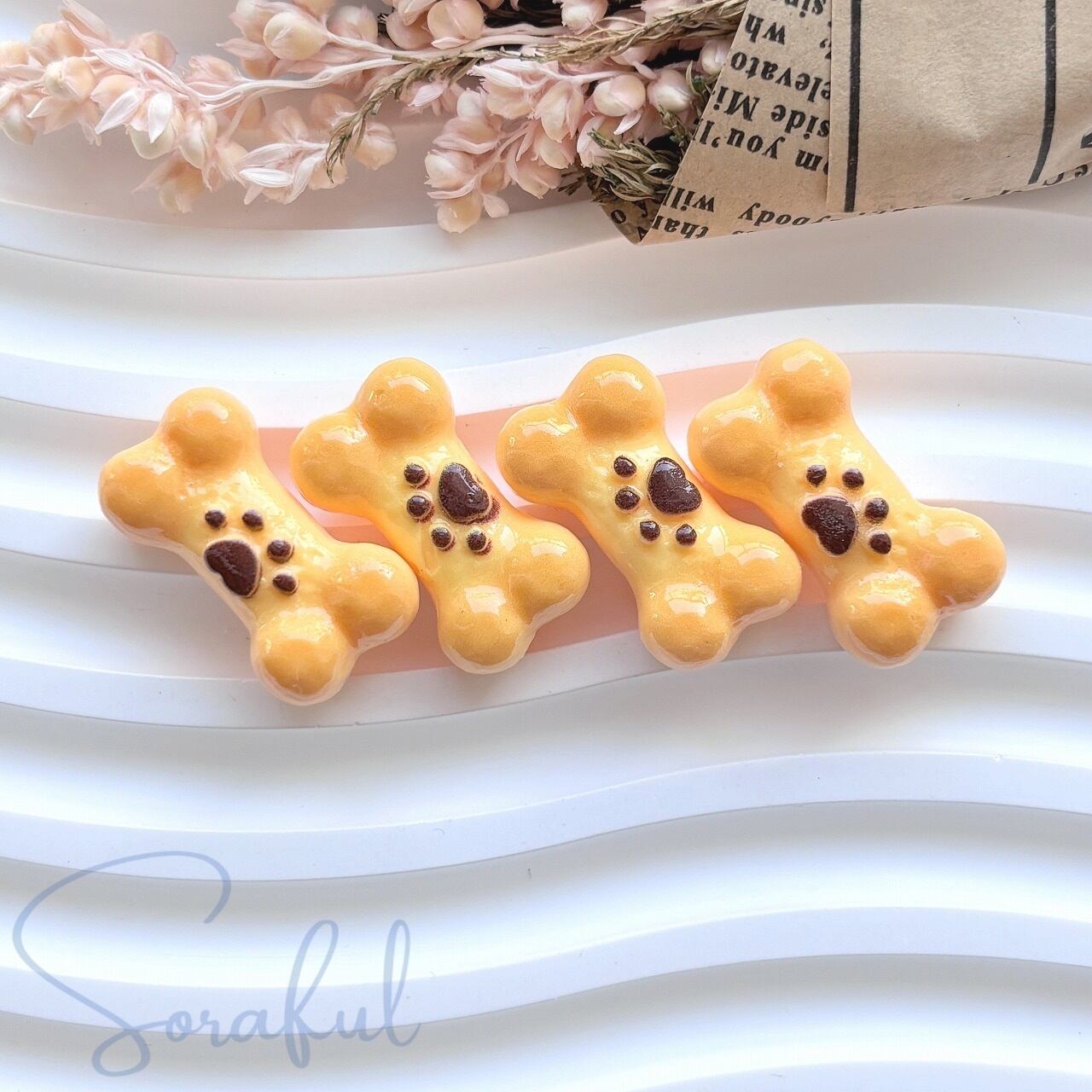 【4個】骨モチーフのこんがりパン ブレッド 肉球 ワンちゃん【デコパーツ】D-0716