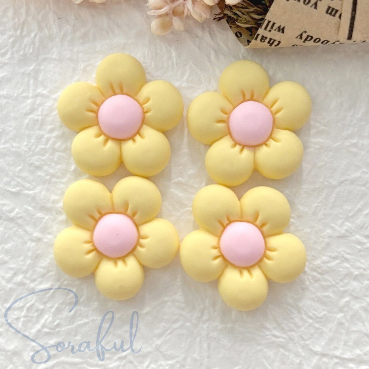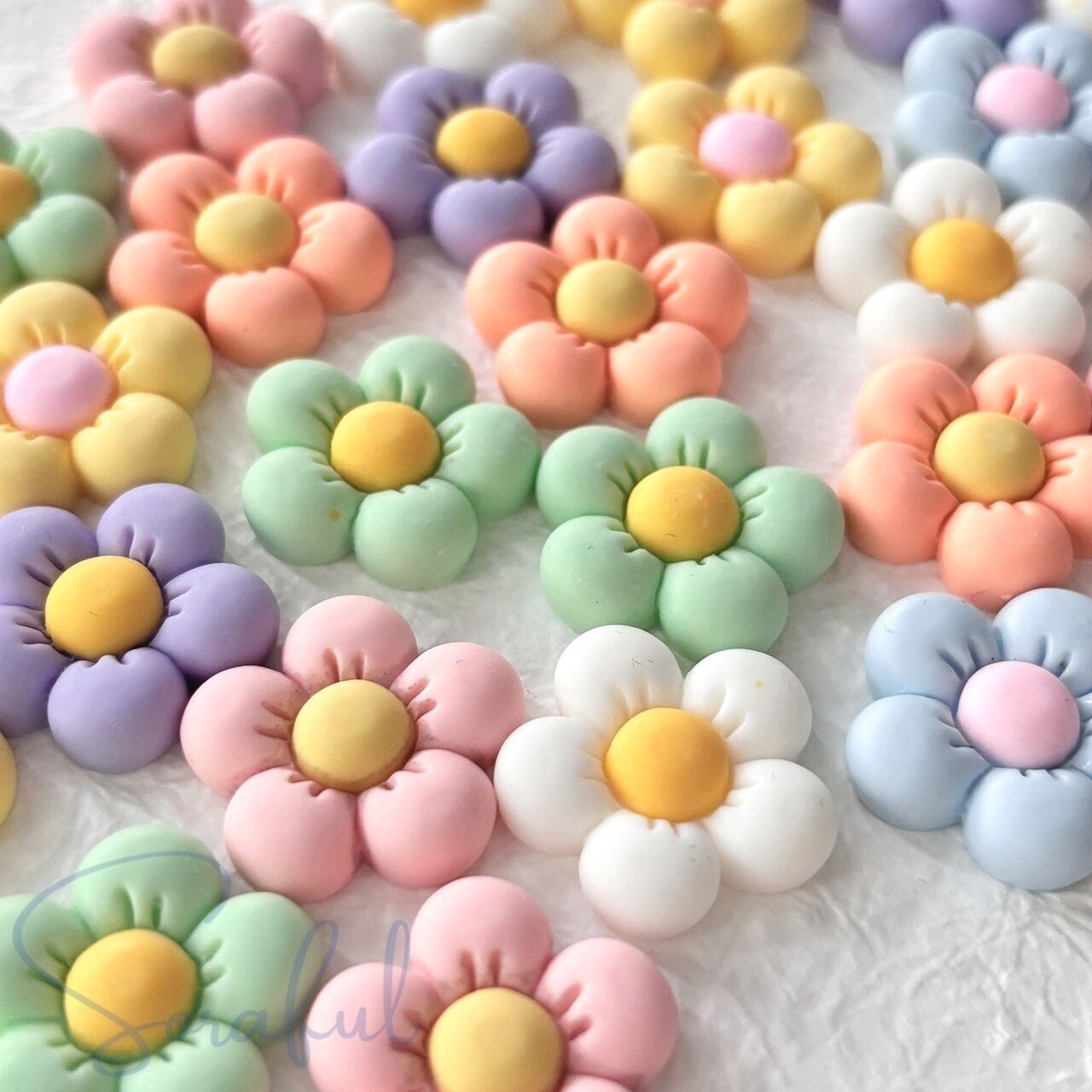 【4個】小ぶりでマットなぽってりフラワー カラフル パステル ぷっくり【デコパーツ】D-0711