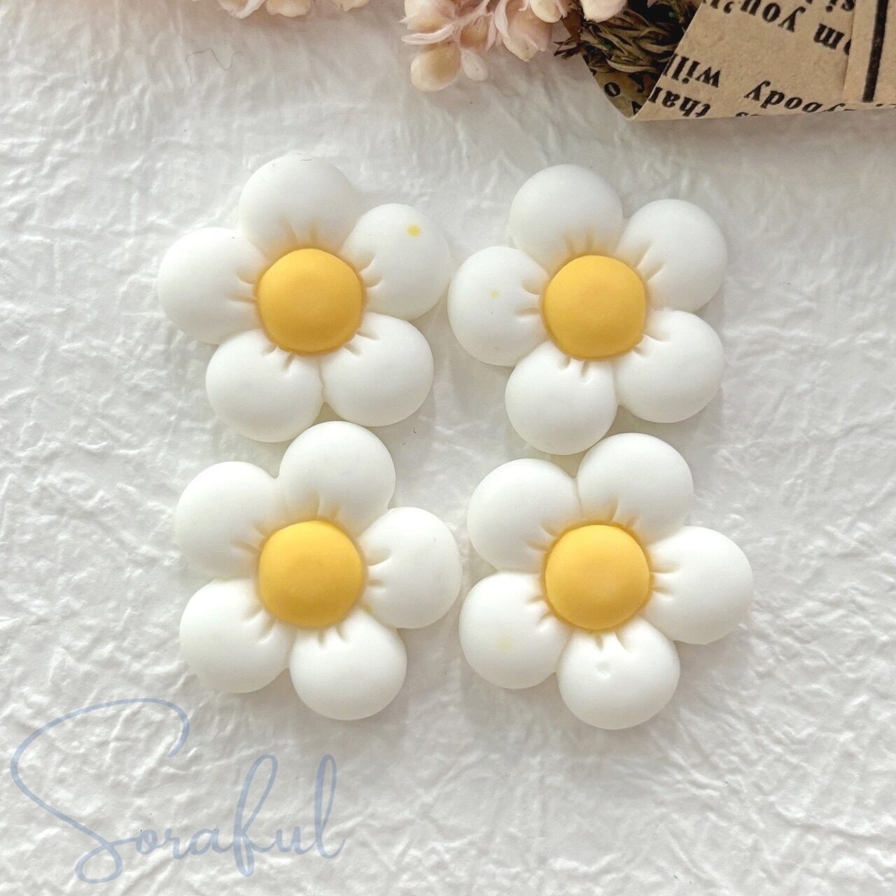 小ぶりでぽってりとしたカラフルなフラワー 4個セット