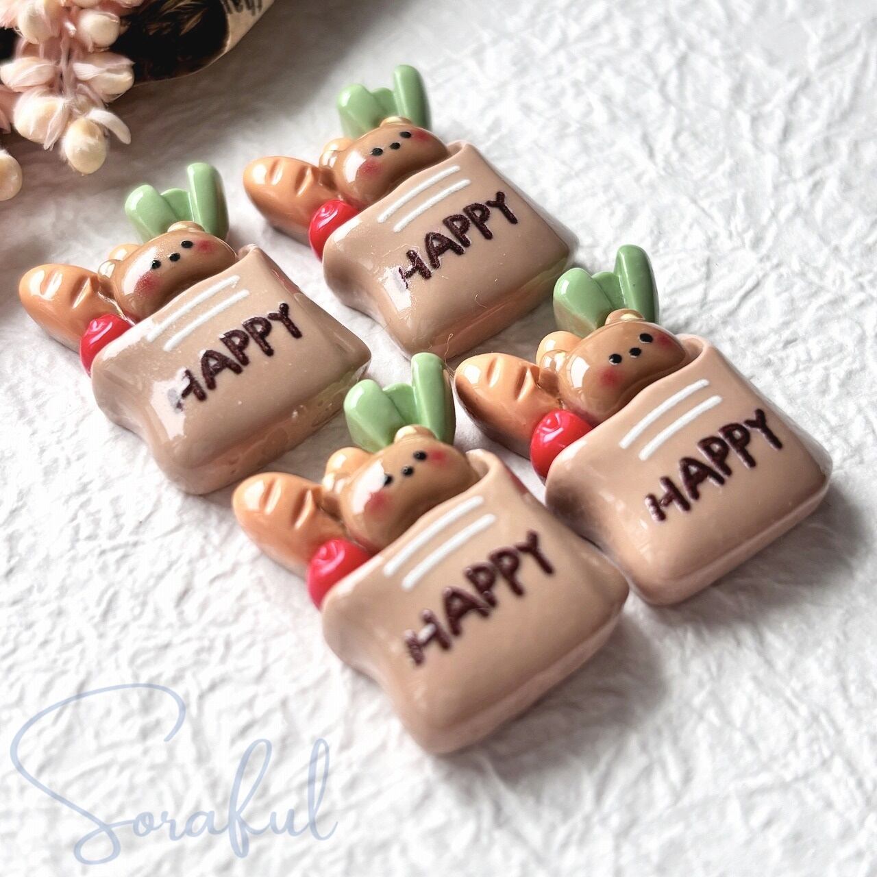 【4個】くまちゃんとお買い物 Happyショッピング スーバーマーケット グロッサリー【デコパーツ】D-0583-bag